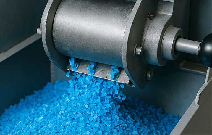 Valplast est équipée d’un déchiqueteur afin de garantir la destruction de produits finis. Ce déchiqueteur est équipé d’un aimant qui permet de séparer les pièces plastiques et métalliques et d’ainsi préparer le produit avant son recyclage.